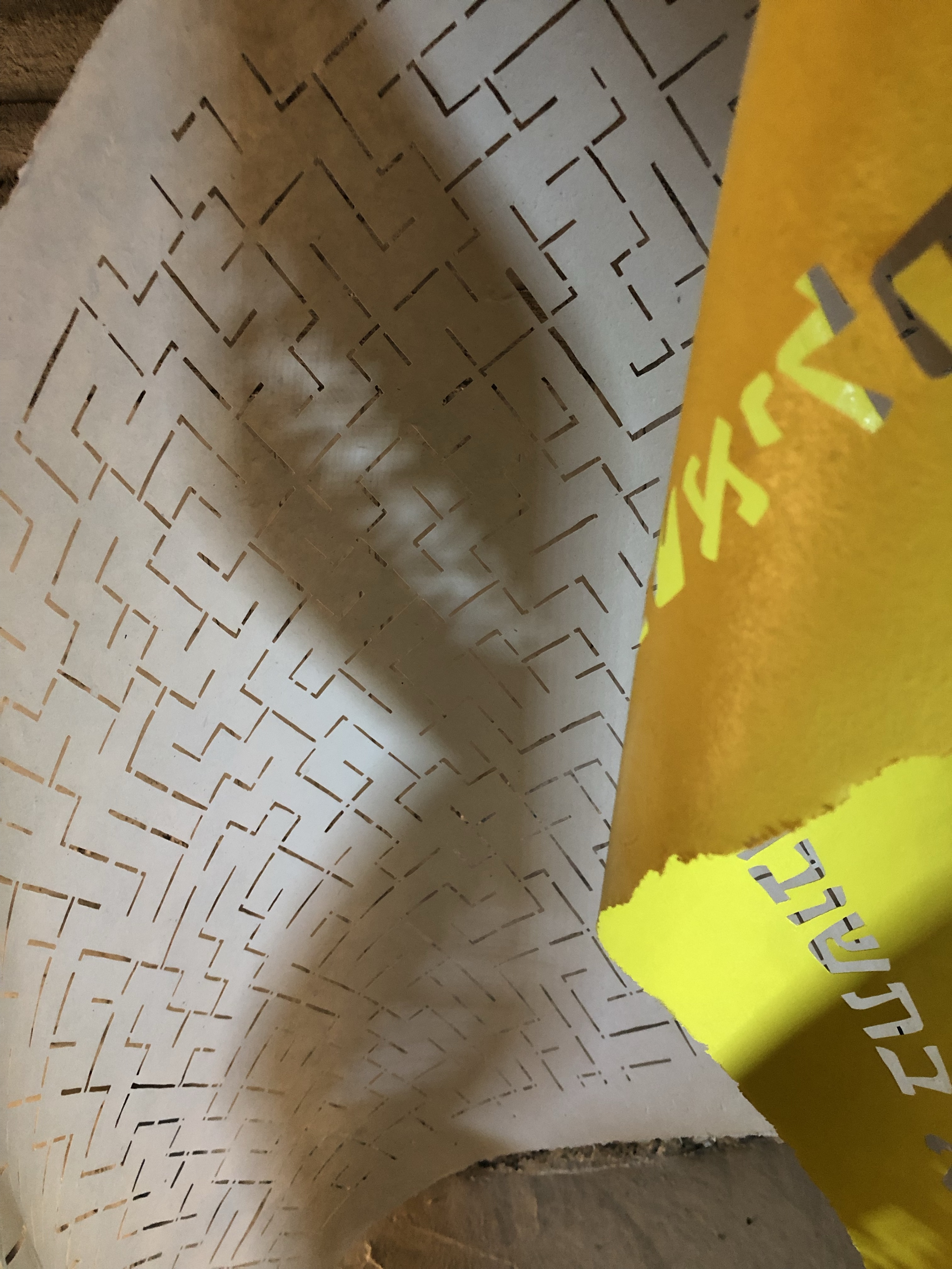 The large white paper cut maze surrounding the yellow core provides the space for the process of moving forward. It envelops but does not strangle. It protects, yet allows for movement. It is a metaphor for any dynamic relationship, including our covenant with God.